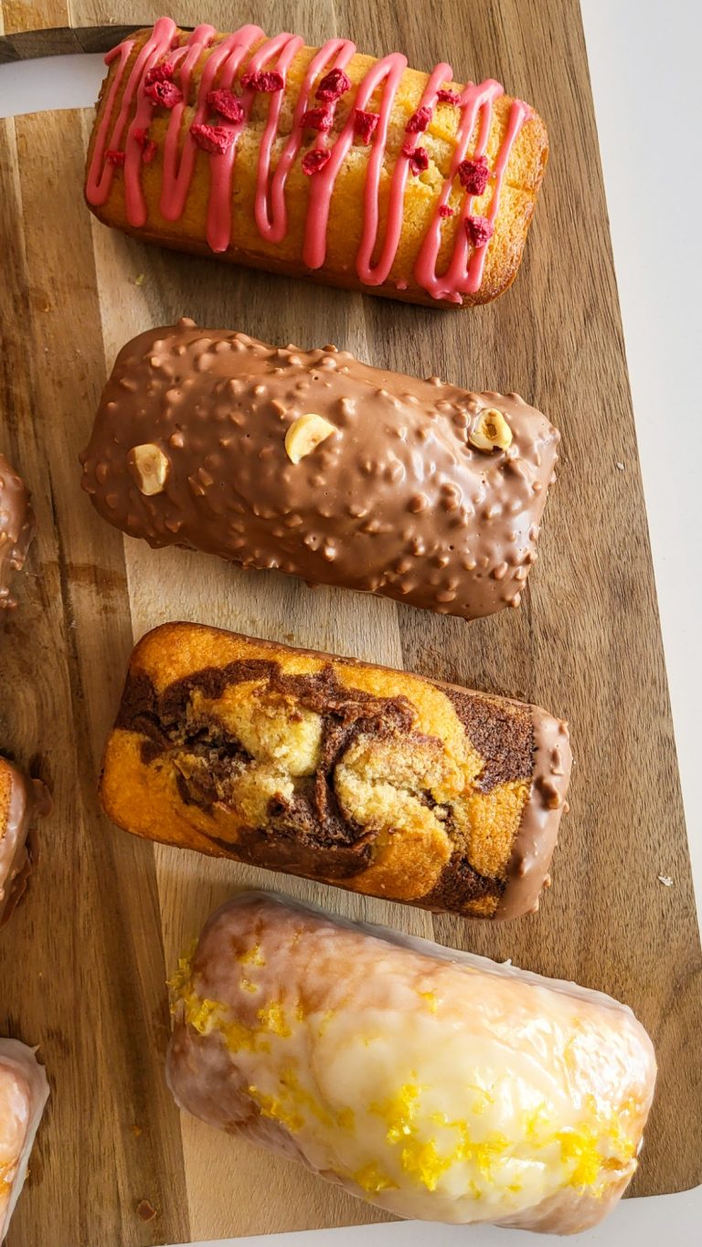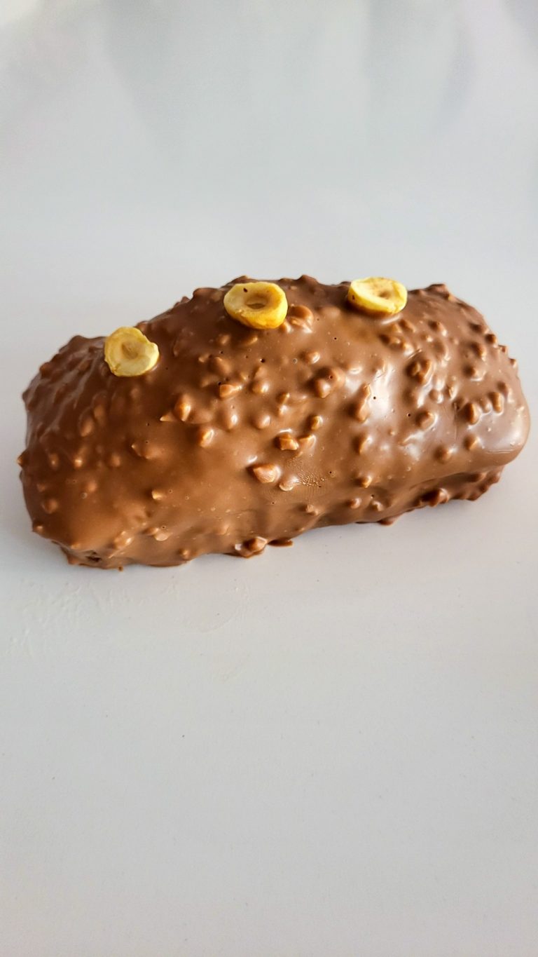 - Cake marmolado de vainilla y chocolate, bañado en glaseado rocher (chocolate con leche y avellanas).