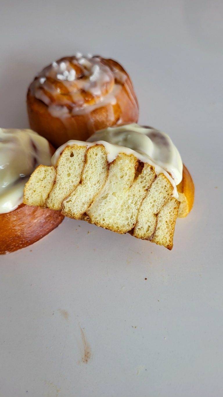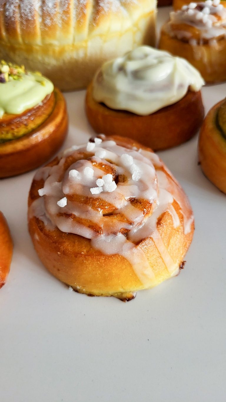 - Cinnamon roll clásico con glaseado de azúcar y con glaseado de crema de queso.